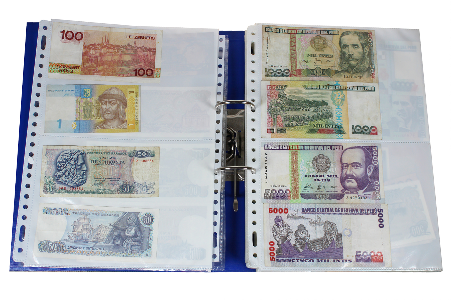 Blauw album bankbiljetten wereld gebruikt en ongebruikt!