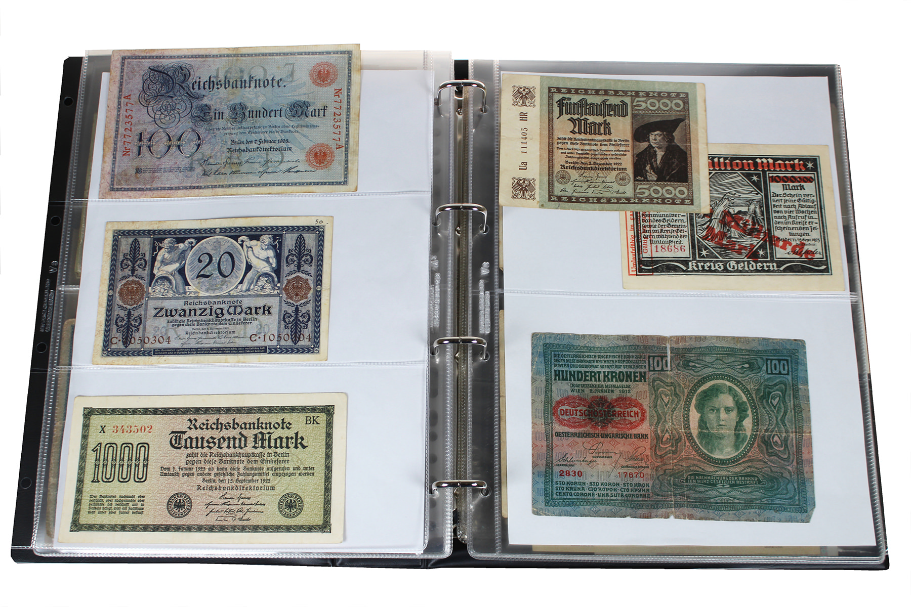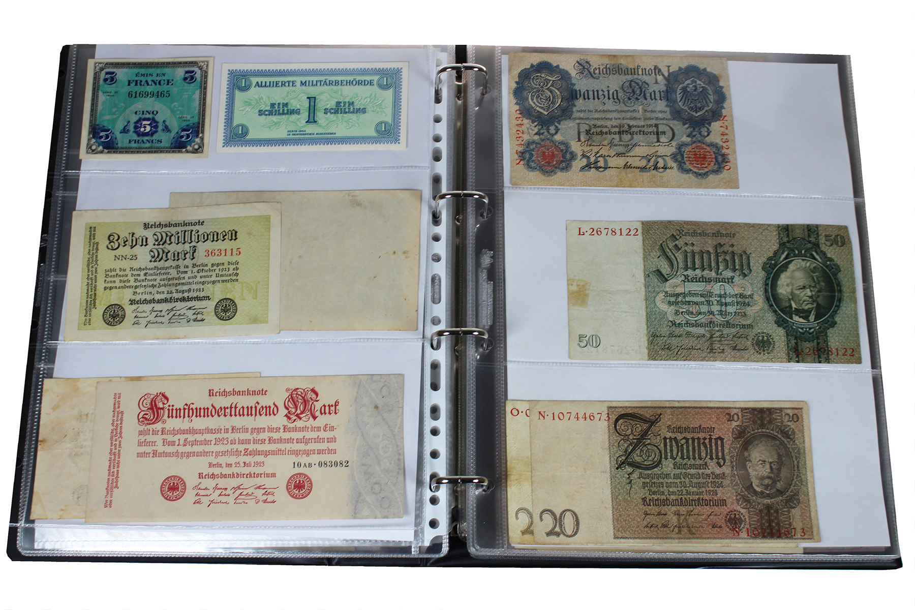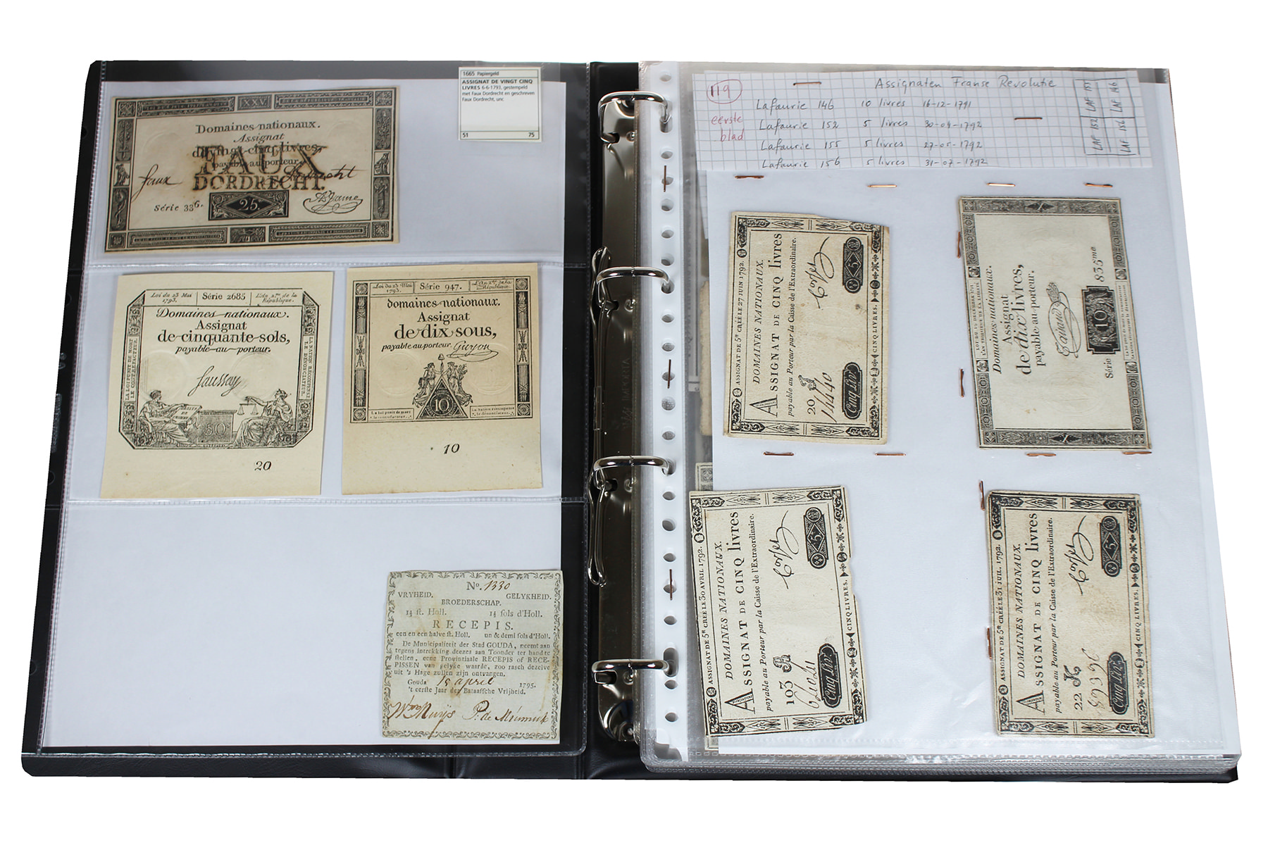 Blauw Importa-album met leuke restcollectie Assignaten en o.a. Duits noodgeld!
