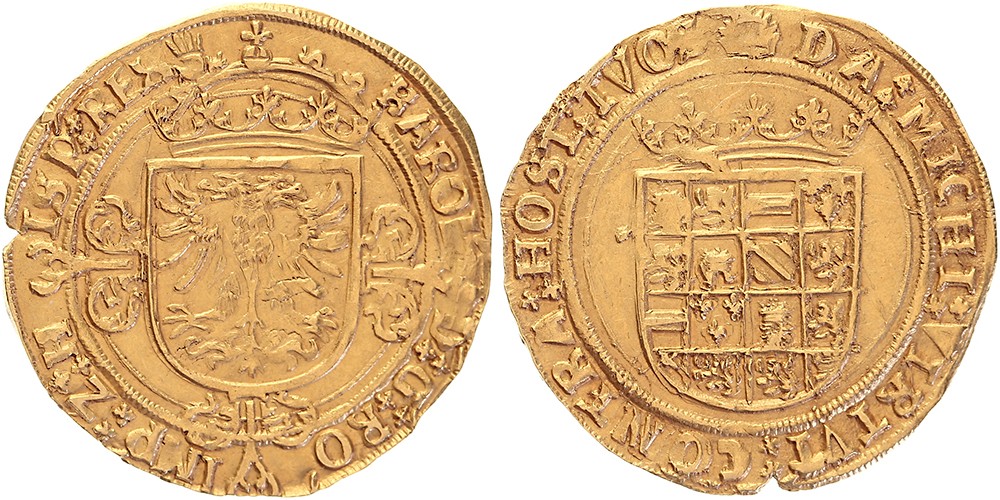 ½ Gouden reaal z.j. (1521-1552), Antwerpen. GH 184-1a; Delm. 99 [3,50 gram]. Minimale randuitbraak. Zeer fraai.