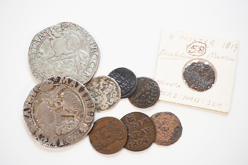 Lot (10) Divers provinciaal in matige kwaliteit o.a. Leeuwendaalder 1643 Overijssel, Florijn van 28 stuivers 1685 Kampen, verder o.a. duiten en halve duiten etc.