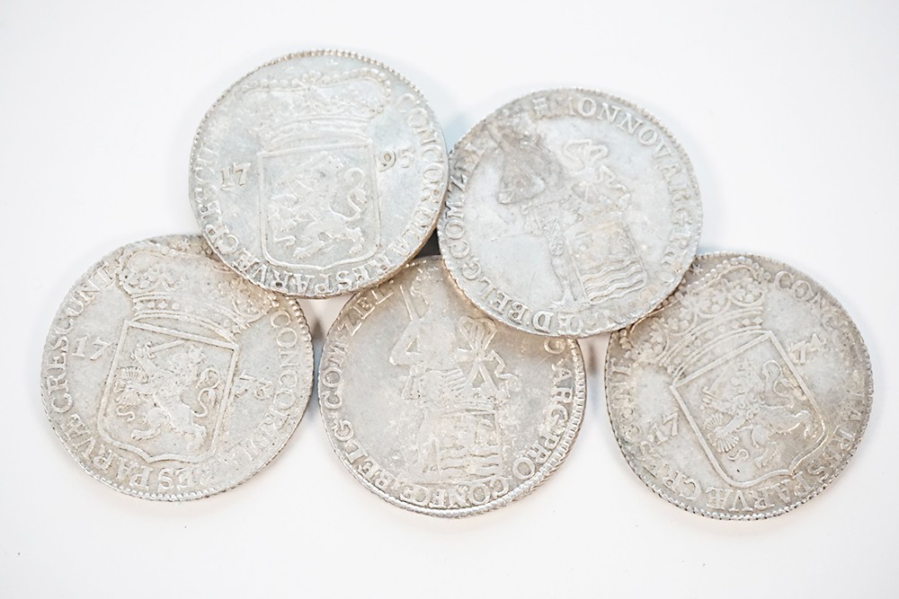 Lot (5) Zilveren dukaten Zeeland 1761, 1773, 1774, 1792 en 1795. CNM 2.49.50. Fraai / zeer fraai.