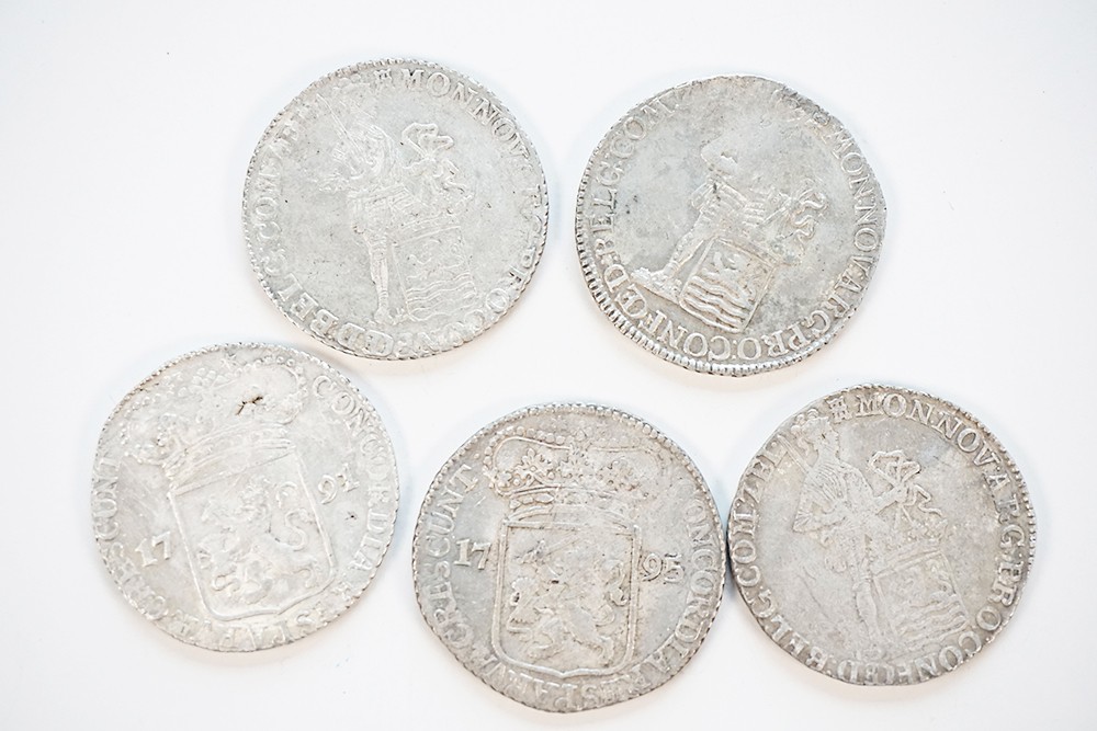 Lot (5) Zilveren dukaten Zeeland 1785, 1791, 1792, 1793 en 1795. CNM 2.49.50. Fraai / zeer fraai.