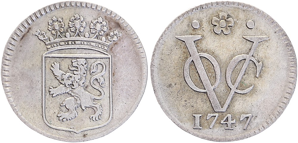 Holland. Duit 1747. Afslag in zilver van 2,99 gram. Scholten 126. Ruim zeer fraai.