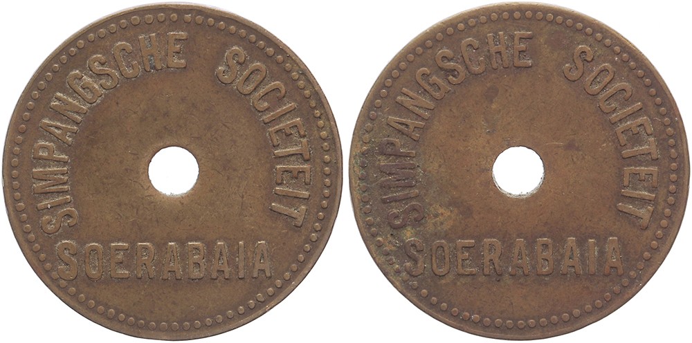 Token Simpangsche Sociëteit zonder waardeaanduiding. LaWe 593. Uitermate zeldzaam, tot nu toe het tweede bekende exemplaar. Æ 27. Zeer fraai.