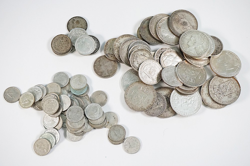 Lot (96) Wilhelmina jeugdportret, inhuldigingsportret en hermelijnen mantel. Guldens, halve guldens, kwartjes, en dubbeltjes. Diverse kwaliteiten.