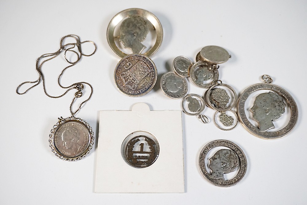 Kistje met leuk lot munten verwerkt tot “sieraad” 13 stuks!