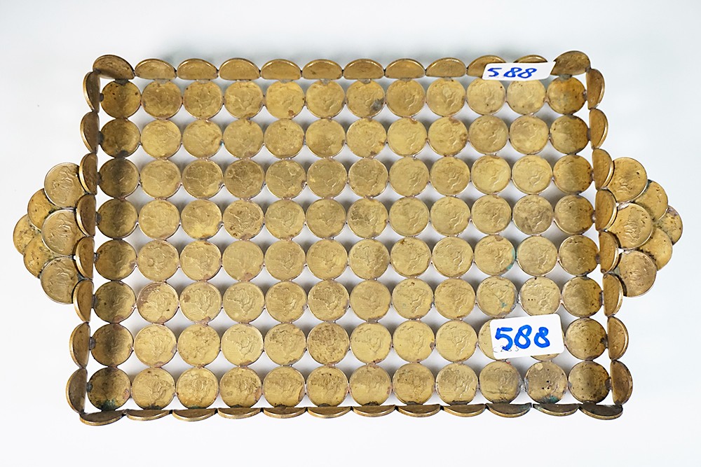 Dienblad heel kunstzinnig gemaakt van 1 Cruzeiro muntstukken van diverse jaartallen. made in Brasil.