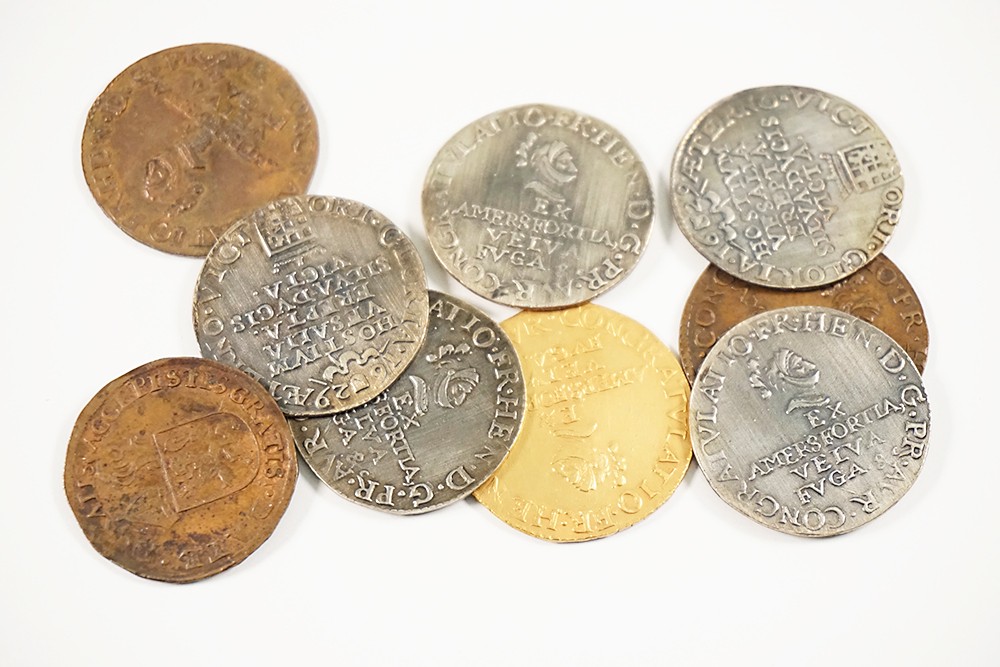 1629 Lot (9) Rekenpenningen of jetons uitgegeven wegens inname van ’s-Hertogenbosch door Frederik Hendrik. Diverse varianten, leuk!