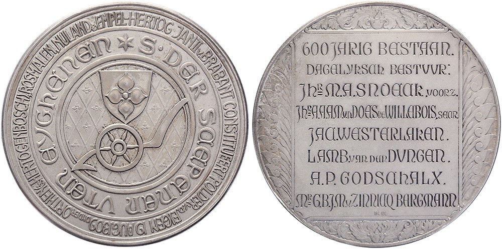 1909 Het 600-jarig Bestaan van de Polder van der Eigen – o.a. te ’s-Hertogenbosch. Polderzegel met omschrift van twee regels. / Achtregelig opschrift met gotische letters. AR 50. KB I-857. B.A. Willekes. Prachtig.