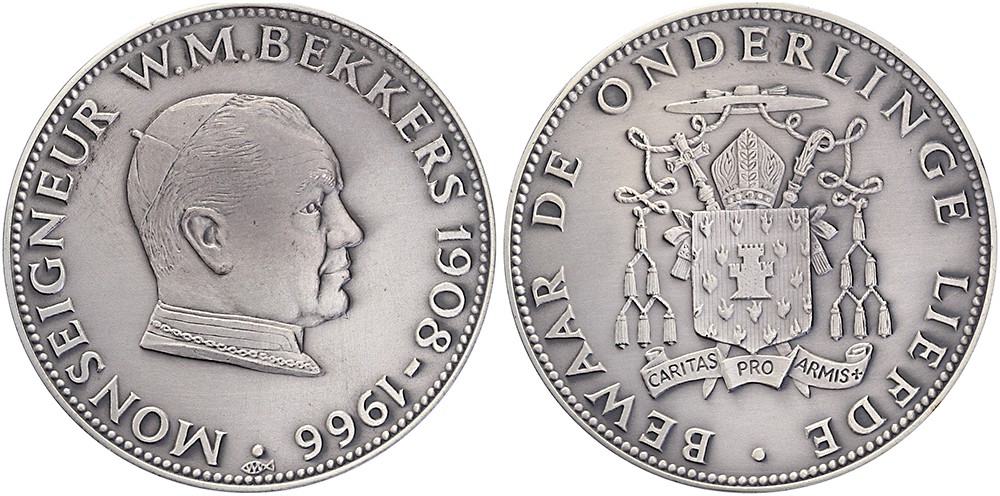 1966 Overlijden van Mgr. W.M. Bekkers – Bisschop te ’s-Hertogenbosch. Portret Bekkers naar rechts. / Wapen met daaronder banderol. AR 50. KB VI-3206. (Pol Dom) & Willem Vis. Prachtig.