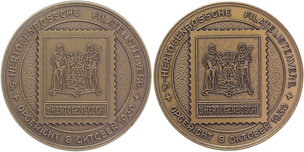 Lot (2) 1970-1980 Penning van een Tentoonstelling gehouden door de ’s-Hertogenbossche Filatelisten Vereniging. Beide koper 50.