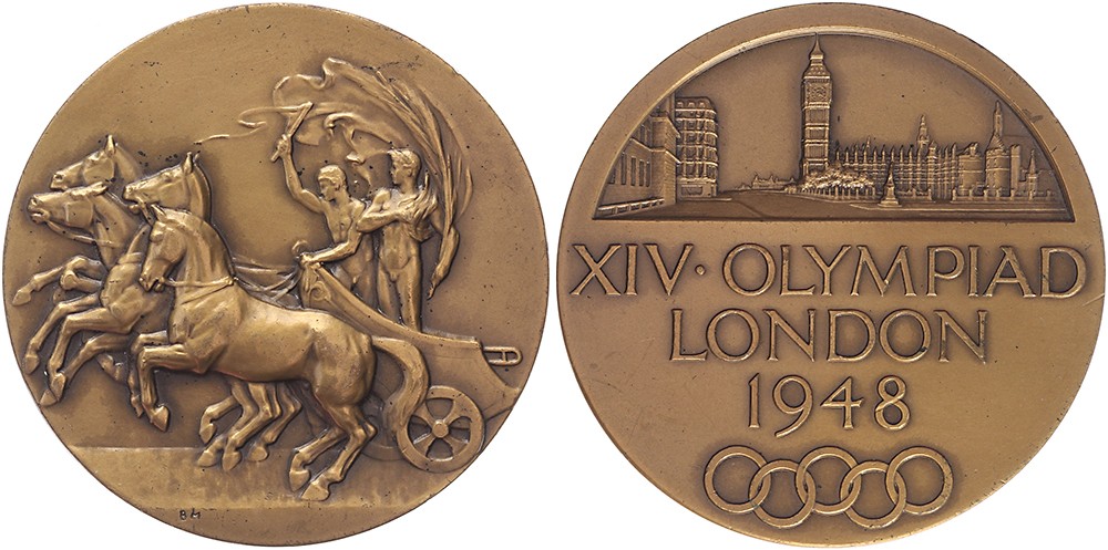 1948 London. Bronze medal for participating athletes. Æ 51. Gad./Vesc. page 117, nr. 2. B. Mackennal. EF.