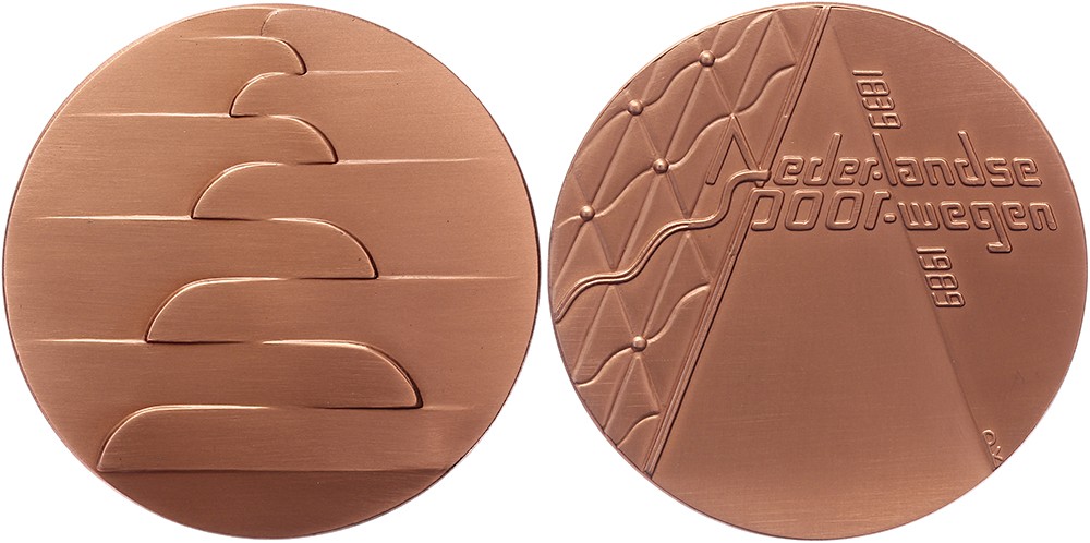 1989 150 Jaar Nederlandse Spoorwegen. Acht gestileerde treinstellen. / Netwerk van spoorknooppunten. Æ 65. Tilanus pag. 479-481. (Lucie Nijland). Prachtig.