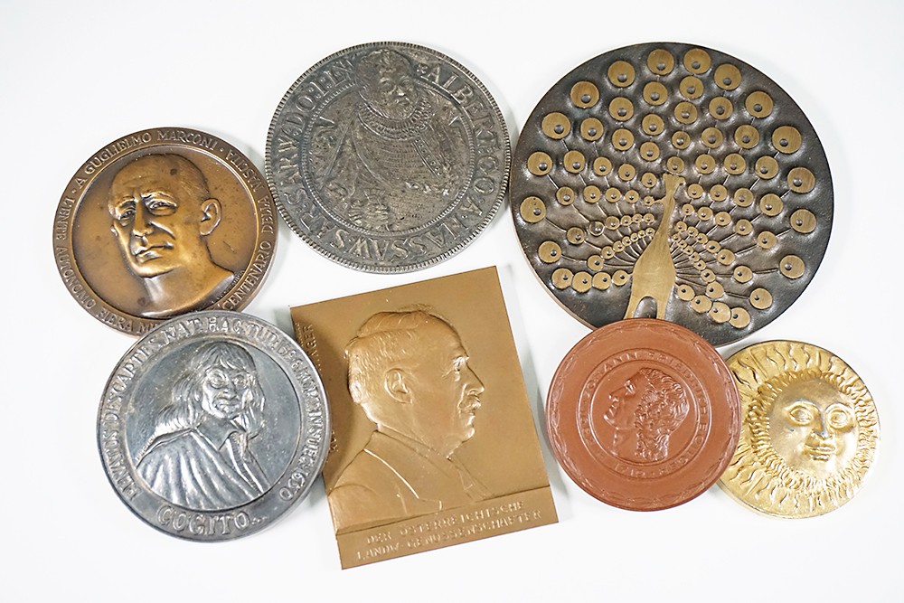 Sigarenkistje ‘Corps Diplomatique’ met 7 grootformaat penningen diverse landen.