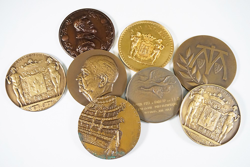 Transparant doosje met 8 Belgische grootformaat penningen.