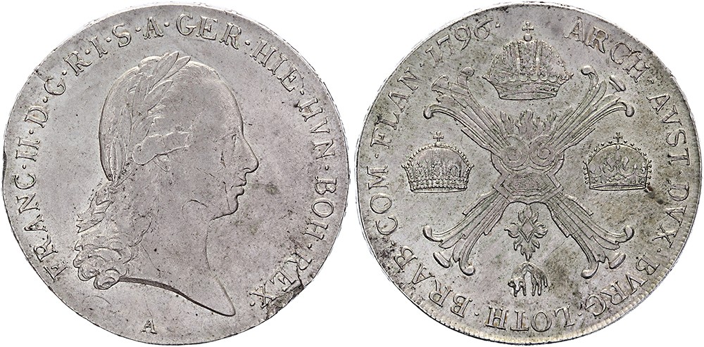 Kronentaler 1796A. Dav. 1180; KM 62.1. Onregelmatige rand. Zeer fraai.