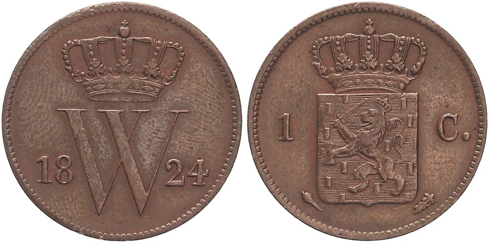 1 Cent 1824 Utrecht mmt. fakkel Sch. 328 Ruim zeer fraai