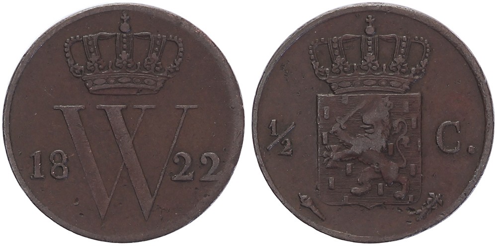½ Cent 1822 Utrecht mmt. fakkel Sch. 353. [muntslag] Zeer fraai