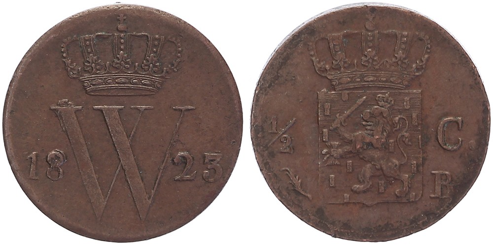 ½ Cent 1823 Brussel mmt. palmtak Sch. 368. [muntslag] Zeer fraai