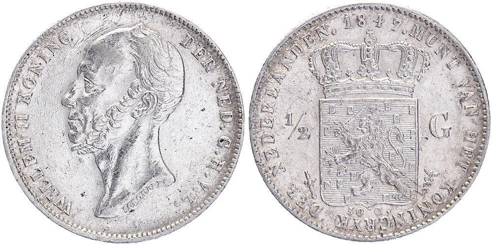 ½ Gulden 1847 mmt. zwaard Sch. 530 Prachtig