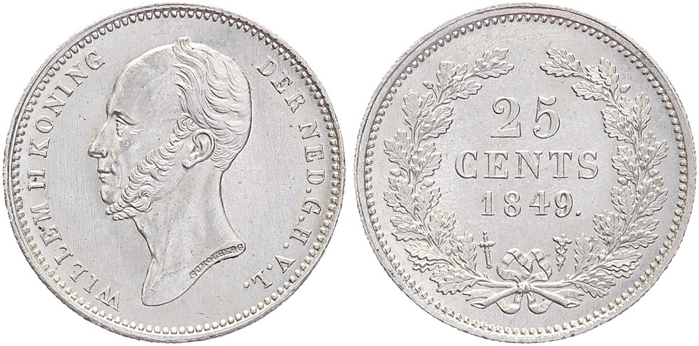 25 Cents 1849 mmt. zwaard Sch. 533 Vrijwel FDC