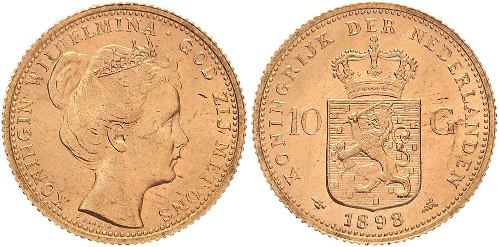 10 Gulden 1898 mmt. hellebaard Sch. 744. P. PANDER Prachtig