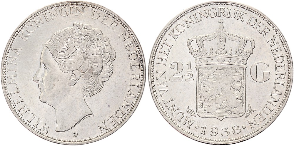 Rijksdaalder 1938 mmt. druiventros Sch. 790a. Grof haar Prachtig