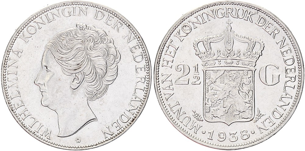 Rijksdaalder 1938 mmt. druiventros Sch. 790a. Grof haar Prachtig