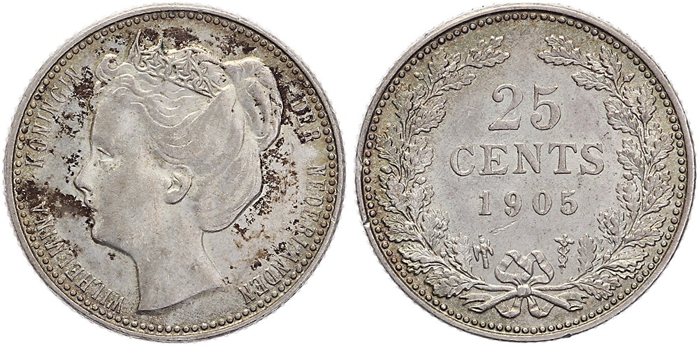 25 Cents 1905 mmt. hellebaard Sch. 858. Iets gevlekt Zeer fraai