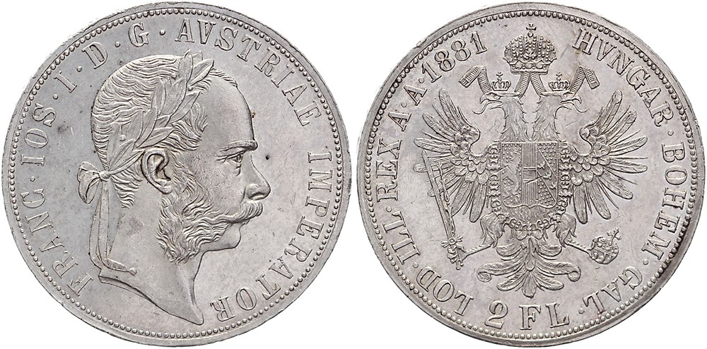 Doppelgulden 1881. Dav. 27; KM 2233. Minimale Randfehler. Vorzüglich.