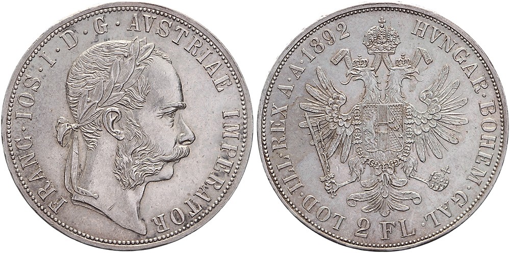 Doppelgulden 1892. Dav. 27; KM 2233. Vorzüglich.