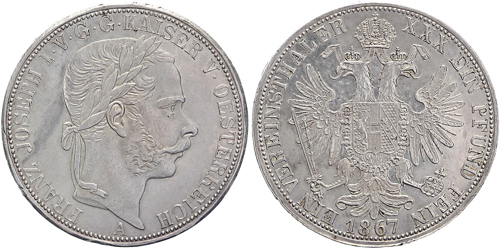 Taler 1867A. Dav. 26; KM 2245. Vorzüglich.
