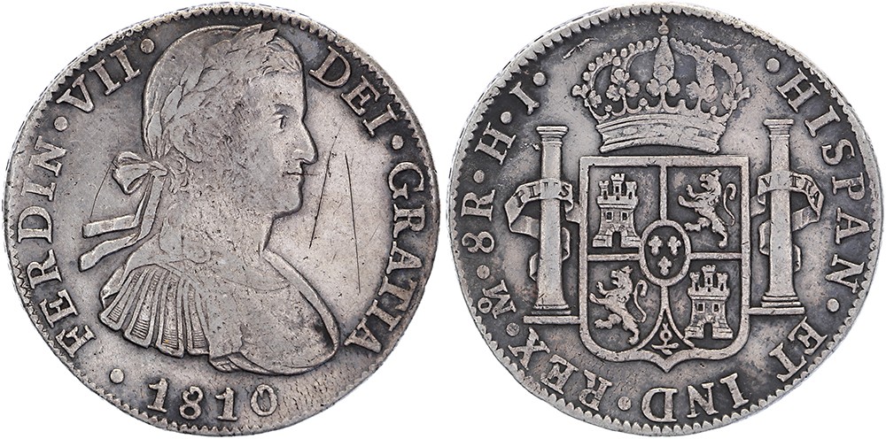 8 Reales 1810HJ. KM 110. Scratches obverse. VF.