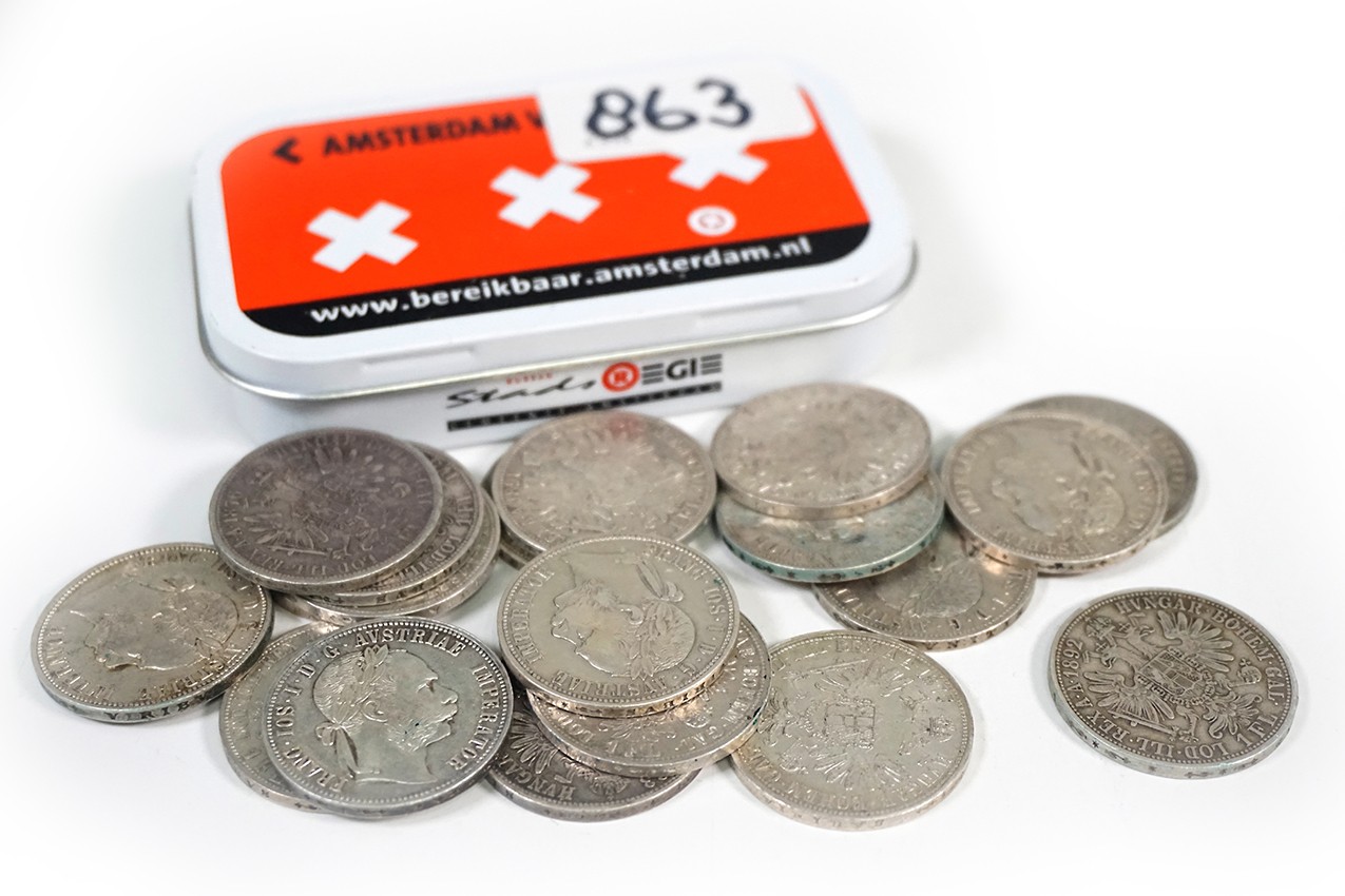 Blikje (19) Florins Franz Joseph I van Oostenrijk tussen 1873-1892.KM 2222. Geen doubletten. Zeer fraai en beter.