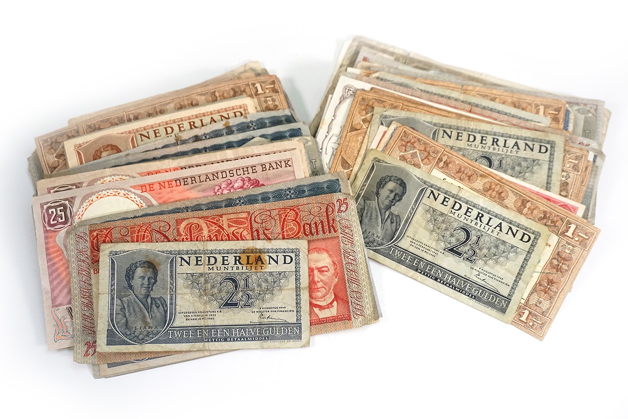 Doosje divers, van 1 t/m 100 Gulden. Vnl. mindere kwaliteiten.