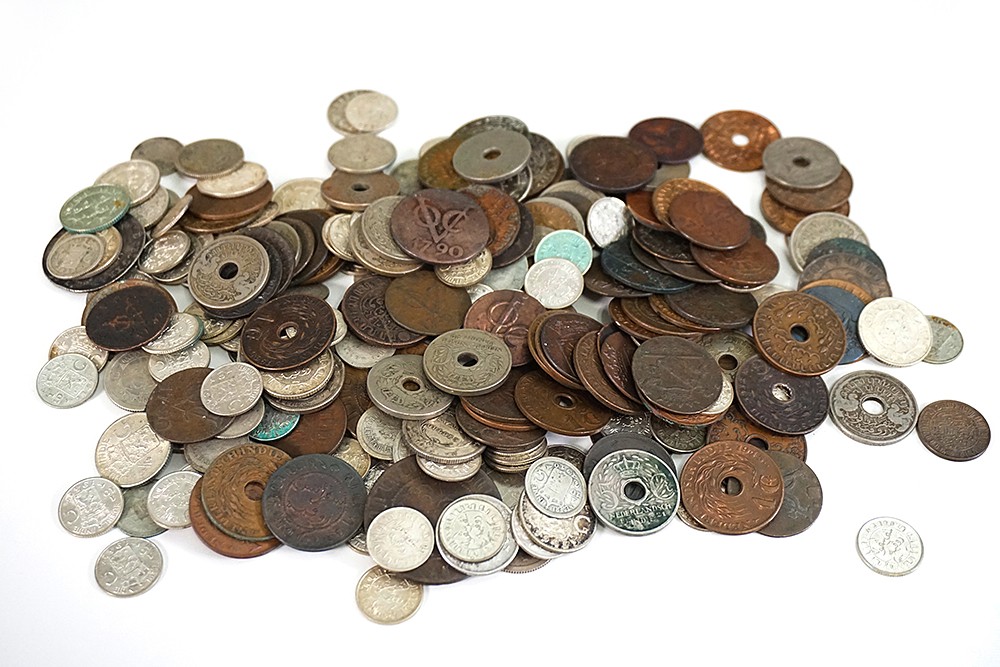 Sigarenkistje V.O.C. / Nederlands Indië; behalve koper- en bronsgeld ca. 260 gr. bruto zilver.
