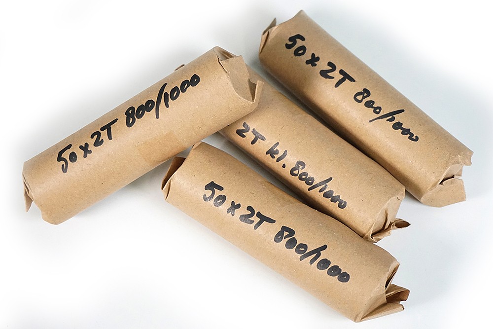 Blauwe cassette met 200 stuks kleine zilveren tientjes Beatrix 1995-1999. Netto zilver: 2400 gram.