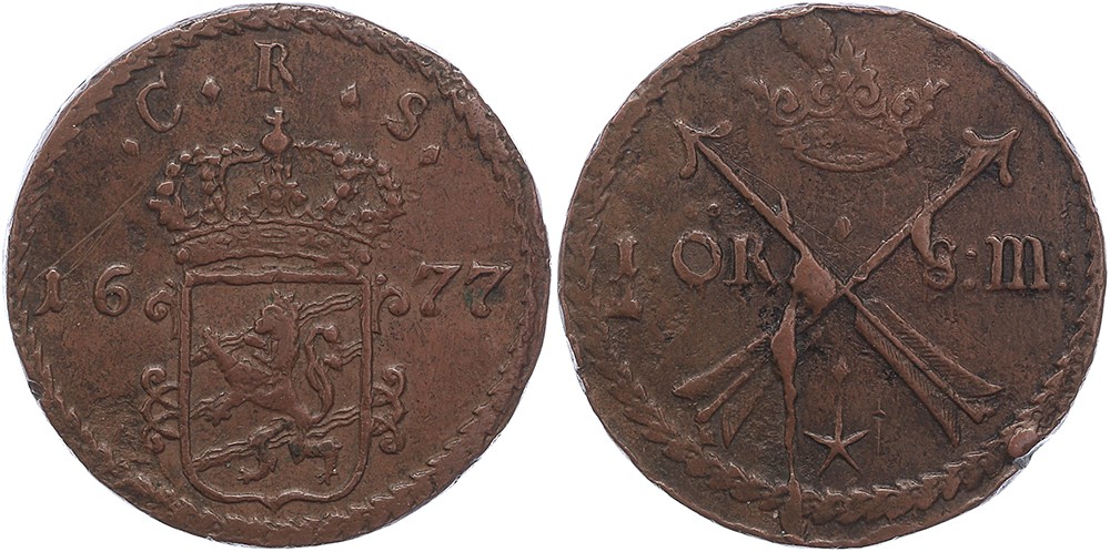 1 Öre 1677 S.M. Ahlström 348; KM 264a. Crude VF.