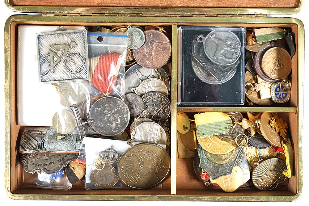 Luxe kistje met veel draagpenninkjes, medailles enz. enz. Ook enig buitenland.