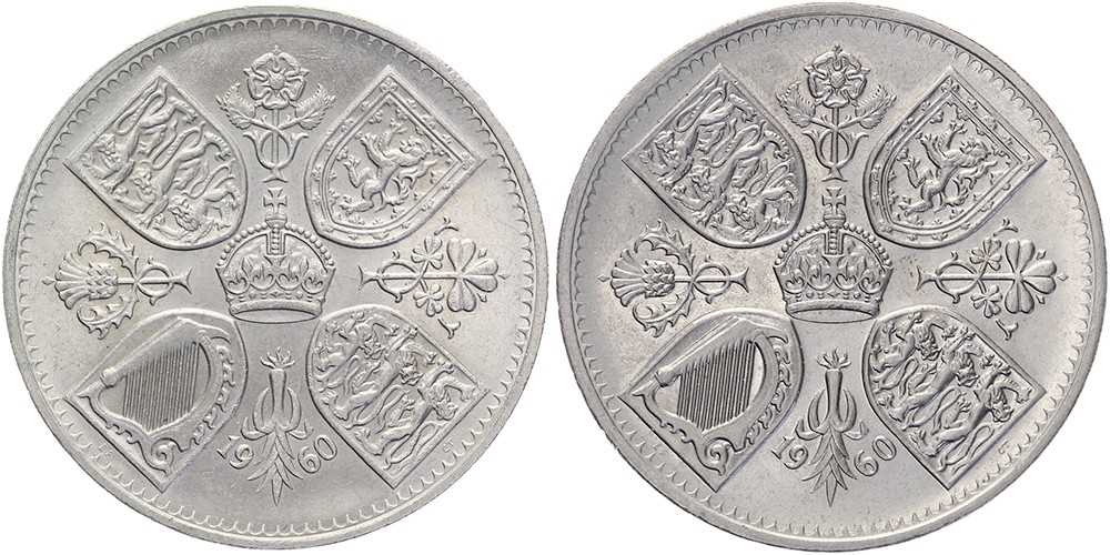 Lot (2) Crown 1960. S 4143; KM 909. Uncirculated & prooflike.