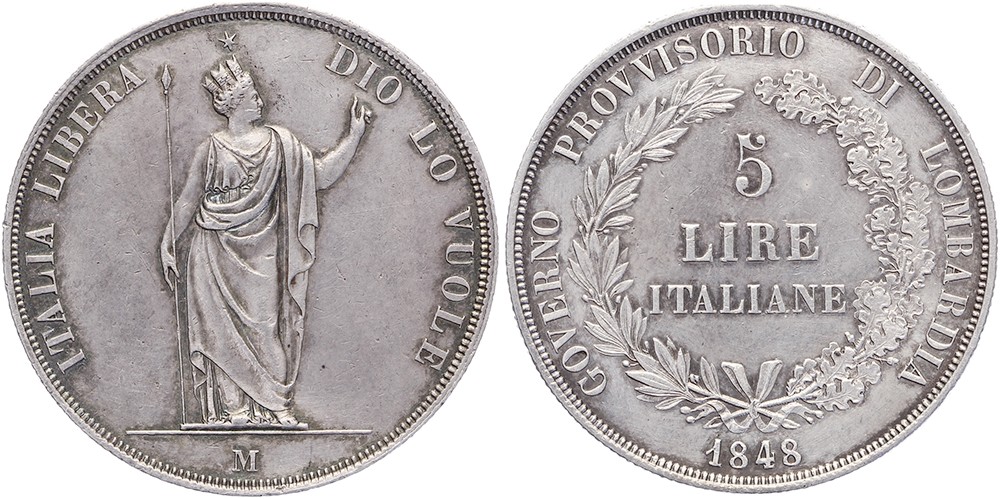 5 Lire 1848. Davenport 206var.; KM C22.1 or C22.3. EF.