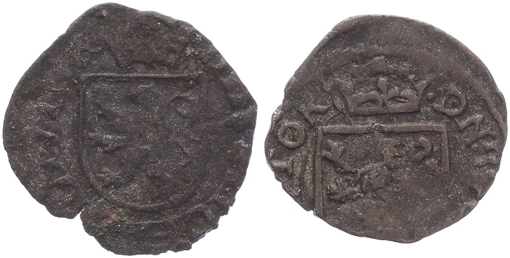 Lot (2) Hollandse penning z.j. GH 228-6b; CNM 2.17.32. Zeldzaam. Circa fraai.