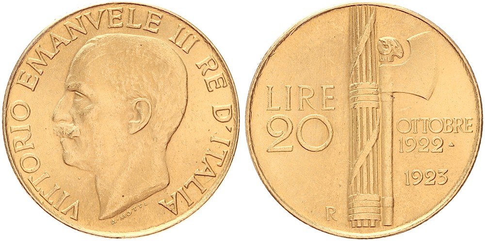 20 Lire 1923. Fr. 31; KM 64. VF.