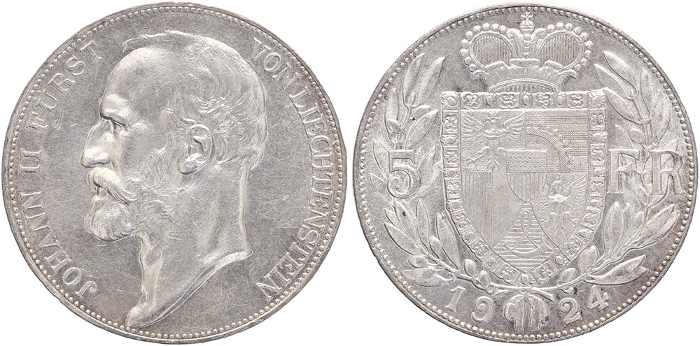 5 Franken 1924. Divo 104; HMZ 2-1379a; KM Y10. Almost uncirculated.
