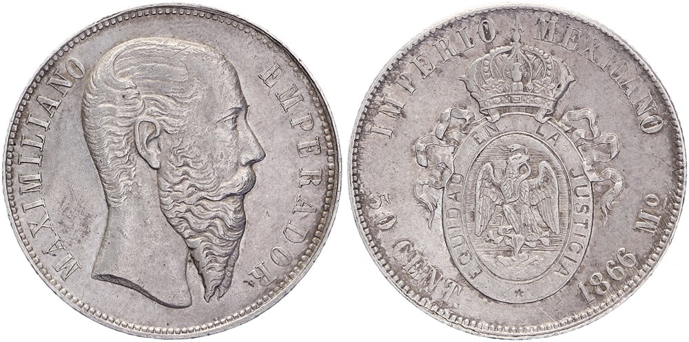 50 Centavos 1866 Mo. KM 387. Near EF.