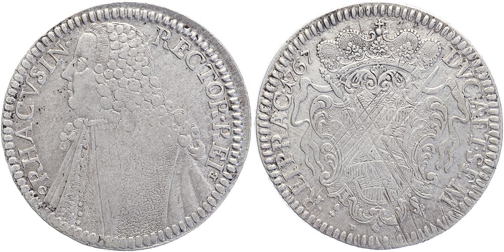 Tallero 1767 GB-DM. Davenport 1639; KM 18. Significant adjustment marks reverse. Good fine.