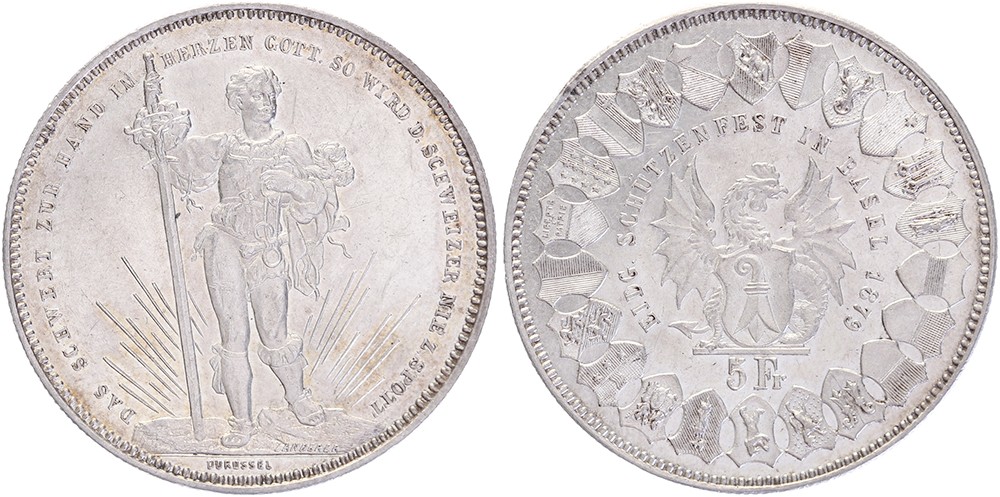 Schützenthaler 1879 Basel. HMZ 2-1343l; KM XS14. EF.