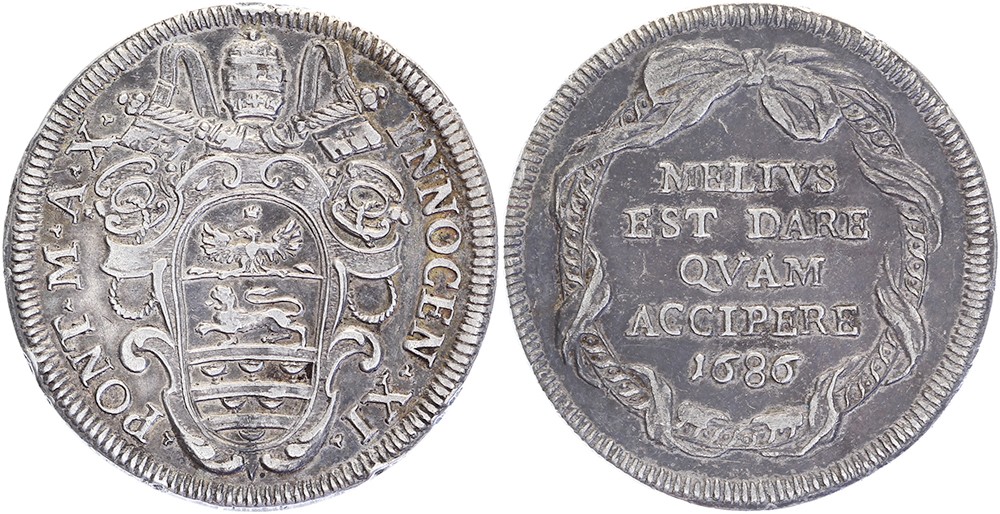 Testone 1686 (30 Baiocchi) Anno X. Berman 2102; KM 493. VF.
