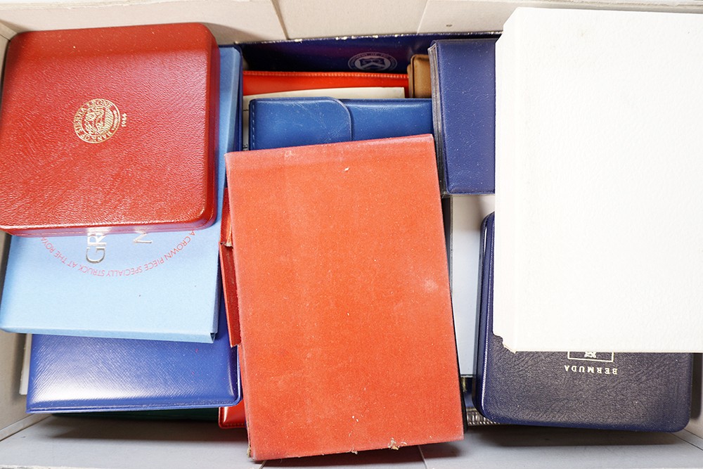 Groot lot (ca. 35 stuks) moderne proof – en mintsets, o.a. 5x Olympiade set Rusland, Moskou 1980. Philipijnen, Engeland, USA etc.