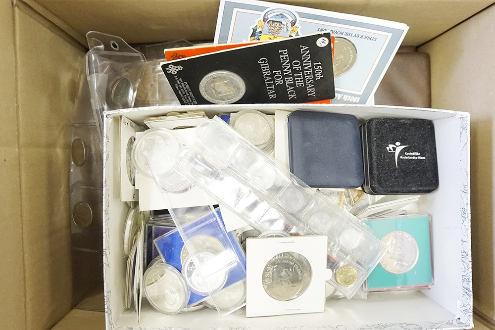 Doos met restcollectie divers wereld o.a. 5 en 10 roebel Rusland Olympische spelen.